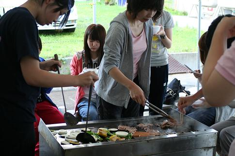 夕食にグループで分かれてBBQ、
