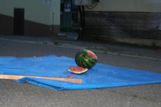 食後は根村先生に頂いたスイカでスイカ割り、